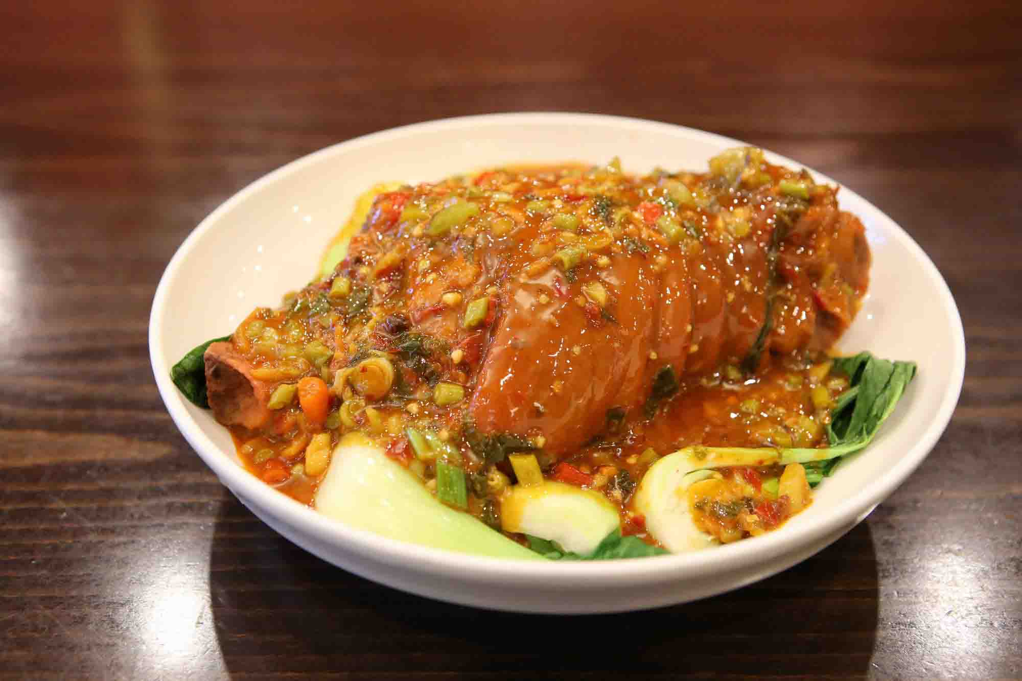 ring a pot of water to a boil. · In a pressure cooker (or stockpot), add tendon and enough water to cover the tendons. · Add scallions, ginger, ...